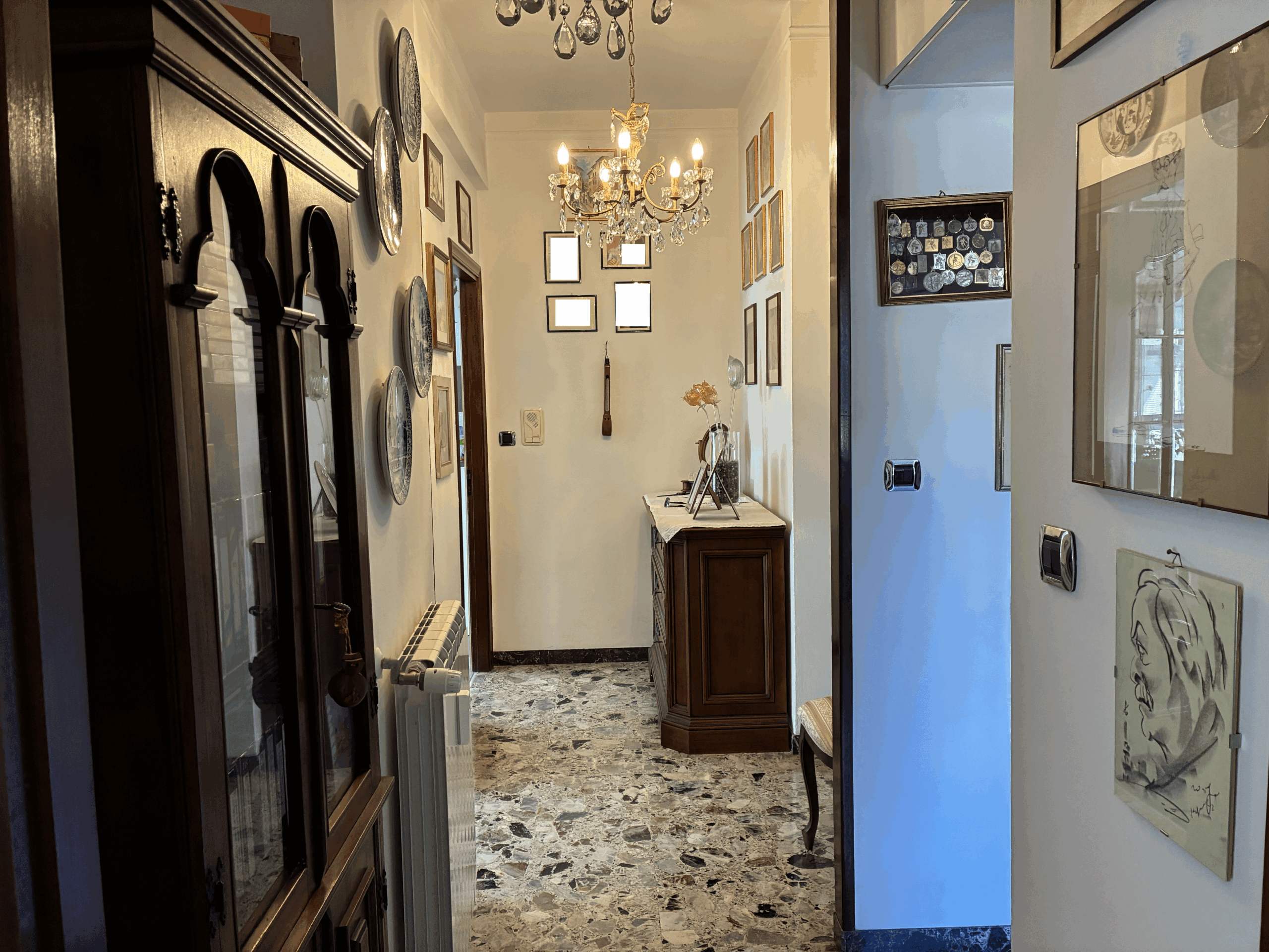 Genova – Pegli (Piazzale Giardino Fiorito). Vendesi incantevole appartamento con una splendida vista panoramica che arriva fino al mare e una spaziosa loggia vivibile, accessibile sia dalla cucina che dal soggiorno, offrendo molto spazio per vivere comodamente.