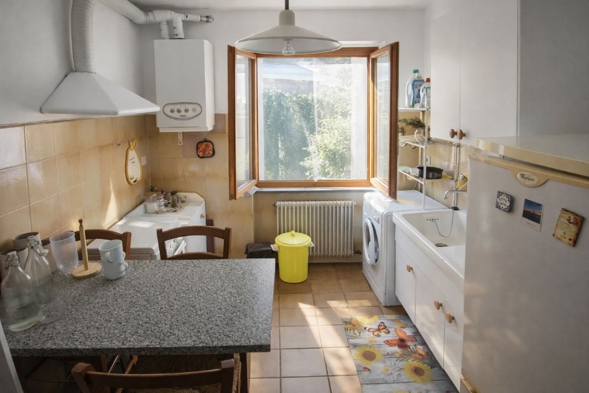 L’appartamento al piano terra è accessibile direttamente dal giardino tramite porta finestra ed è composto da salotto con doppia finestra, cucina separata, due camere da letto e bagno.