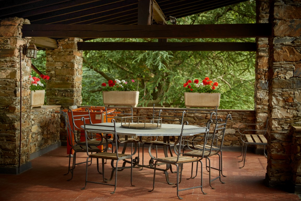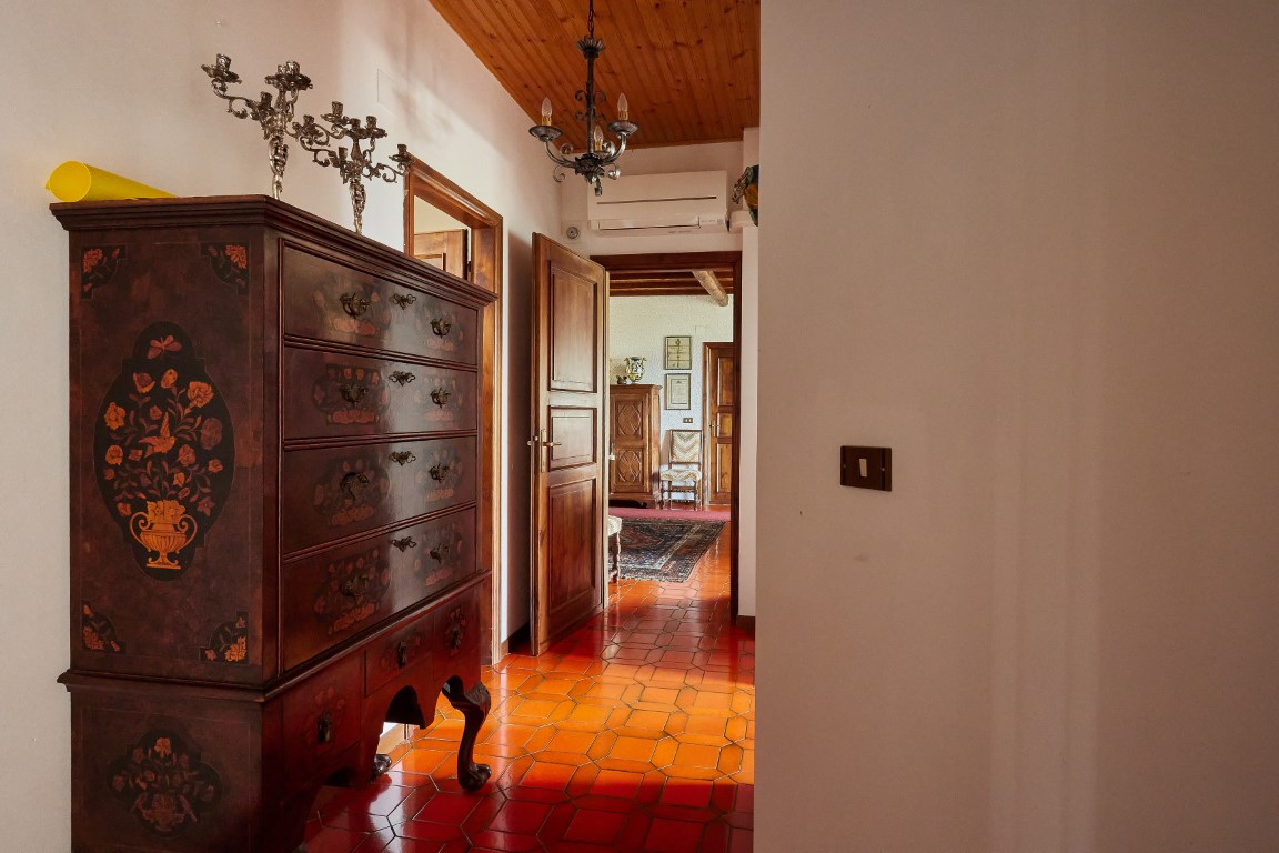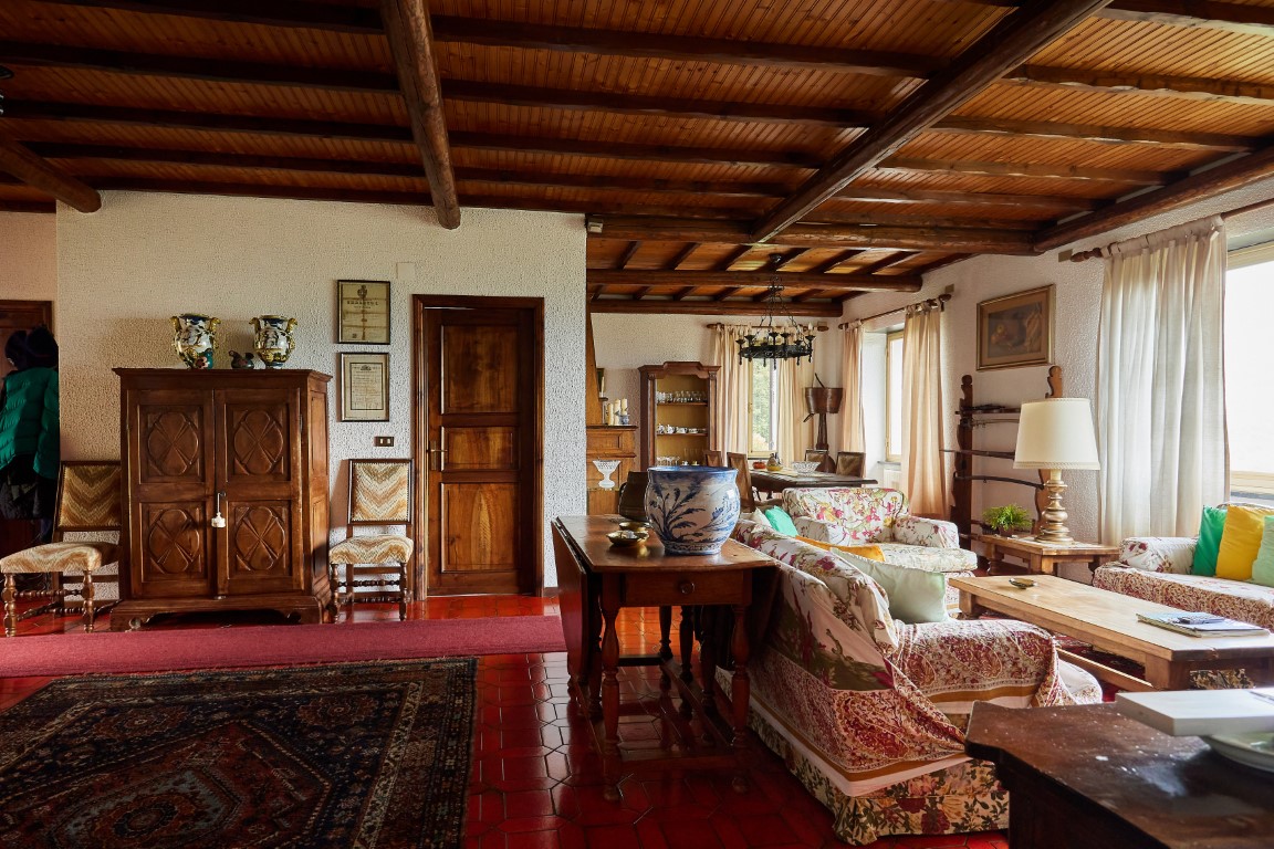La villa e la tavernetta con la Suppressa conservano arredi di sicuro interesse, tra cui mobili antichi di valore, che contribuiscono a creare un’atmosfera autentica e ricca di storia.