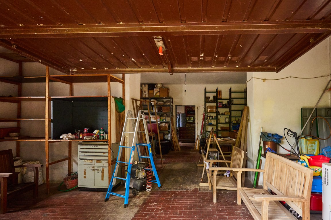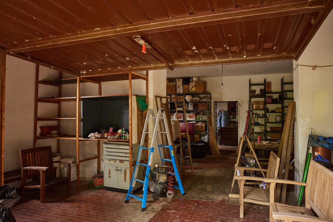 Al piano inferiore si trova un grande open space di pari metratura, accessibile dal livello più basso del giardino, ideale come garage, laboratorio, taverna o spazio creativo.