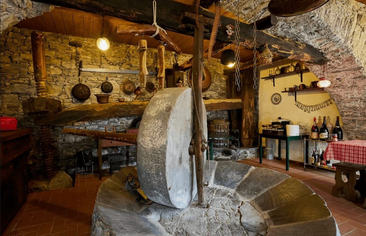 Al piano sottostante si trova una tavernetta di pari metratura che custodisce un elemento davvero unico: una antica “Suppressa” del XVI secolo, frantoio tradizionale perfettamente conservato nelle sue condizioni originali.
